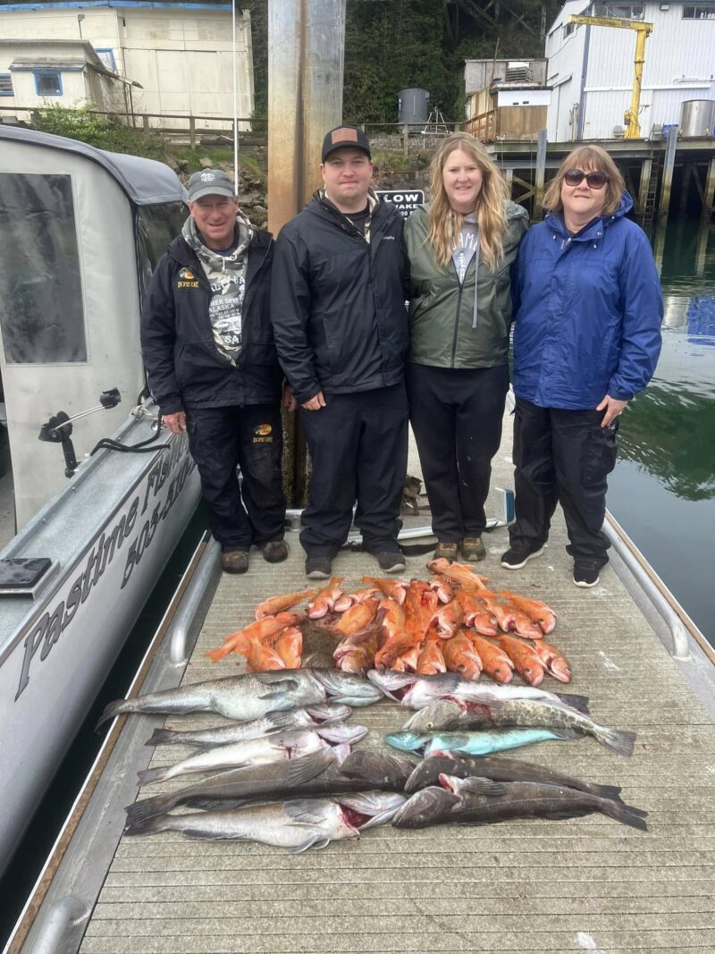 Black rockfish, commonly called sea bass, are the headliners close to town. You will also see blue and deacon rockfish in mixed schools, plus the bright orange canary that has rebounded strongly. Lingcod prowl the same structure and hit big baits and jigs with enthusiasm.